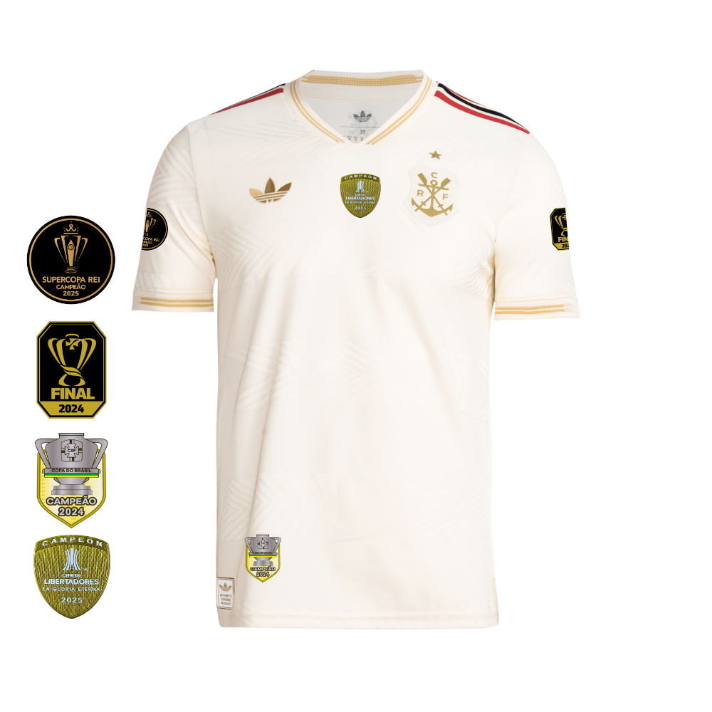 Uma camisa que transcende o futebol e se transforma em obra de arte vestível. O terceiro uniforme em dourado é uma edição especial que celebra mais de um século de conquistas, tradição e paixão da maior Nação do futebol brasileiro. Cada detalhe foi meticulosamente pensado para homenagear a história gloriosa do clube — do escudo vintage aos acabamentos sofisticados em tons de ouro.